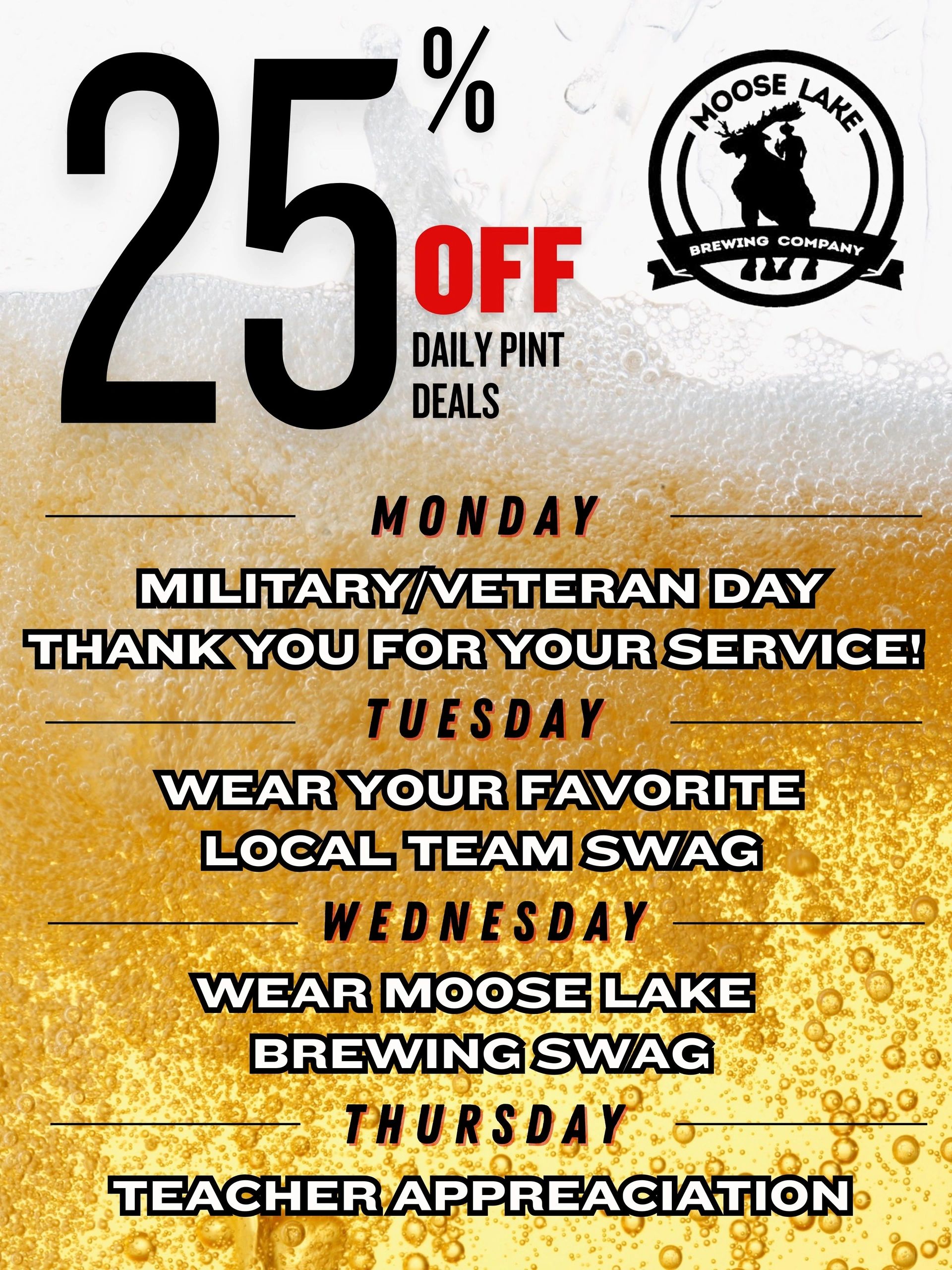 Standing right along side of Moosehead Lake, our taproom is easily accessible by car, bike, ATV, or walking. We have many beers on tap, including our iconic Mango Blonde, Hazy New England IPA, Red Axe Irish Ale, Log Roller IPA, and Whiskey Chip Bourbon Stout, which are our flagship beers, and a rotating stock which you can see a picture of above. Take home a 16oz 4pack or Crowlers 7 days a week!
